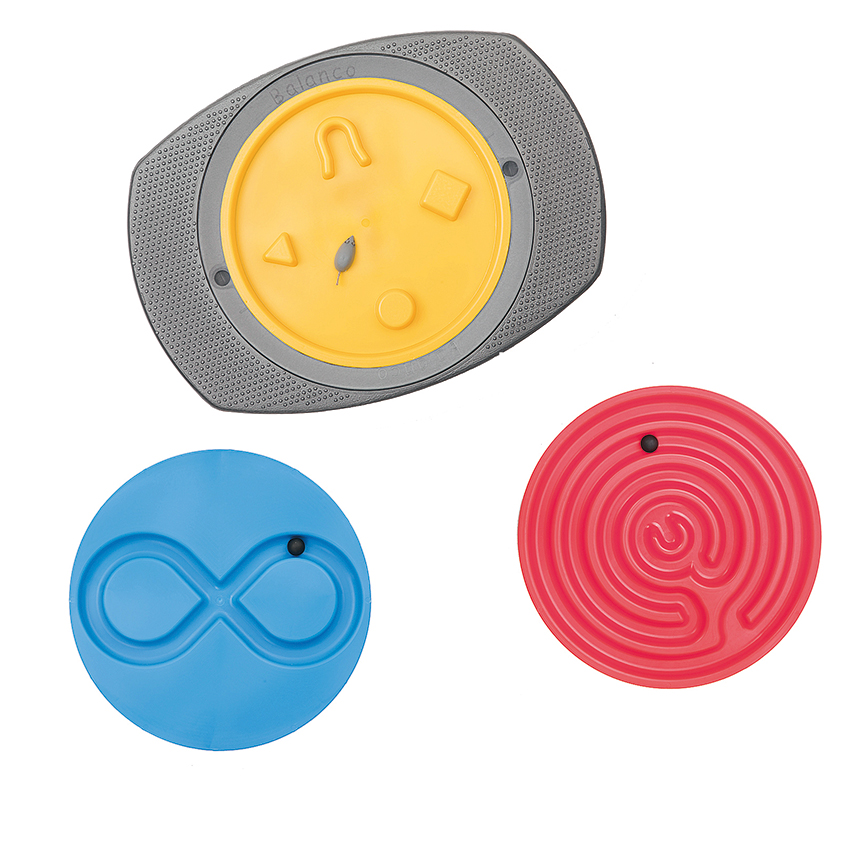 Balancebrett mit 3 Einsätzen zur Förderung verschiedener Bewegungsaspekte.