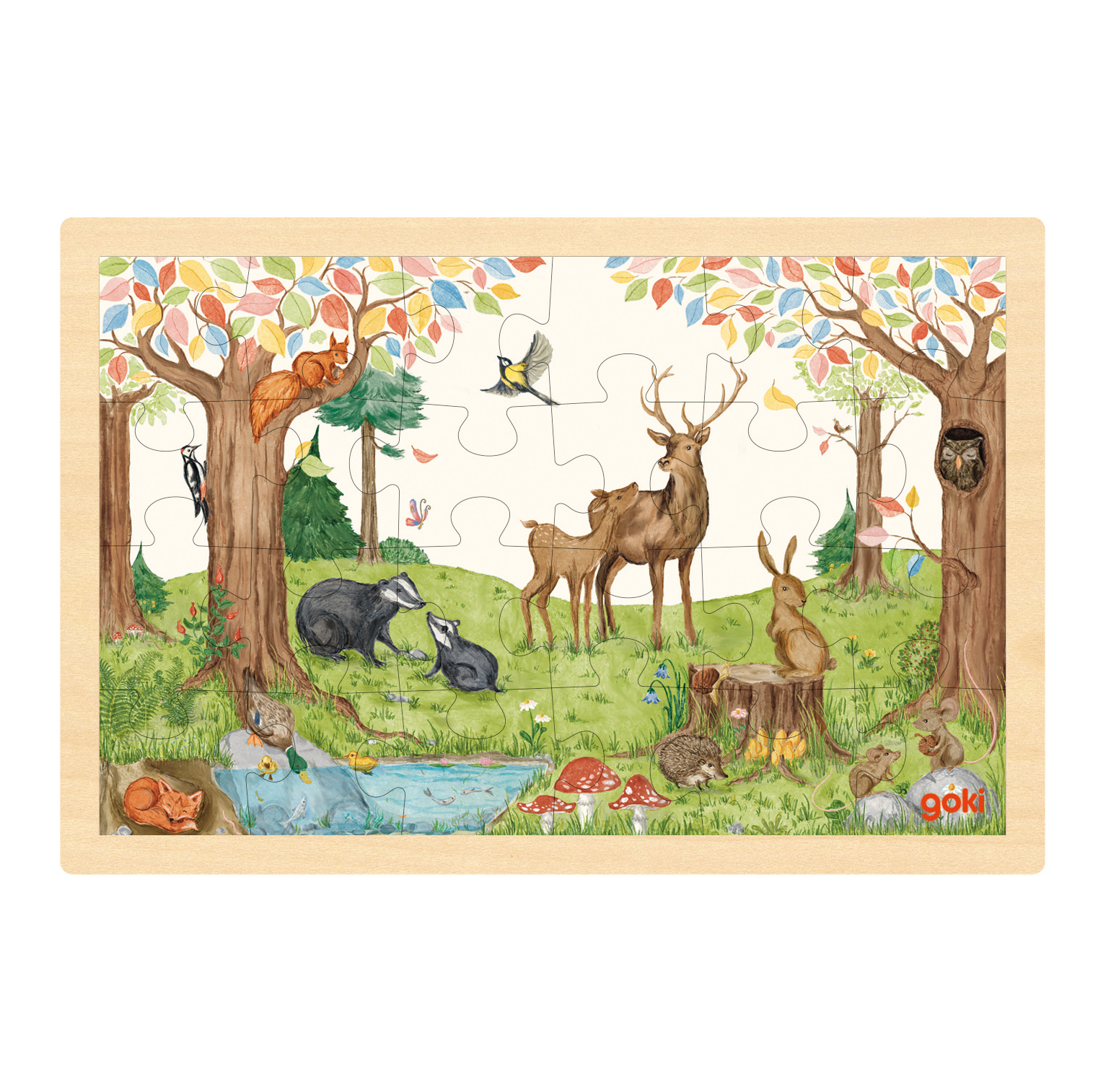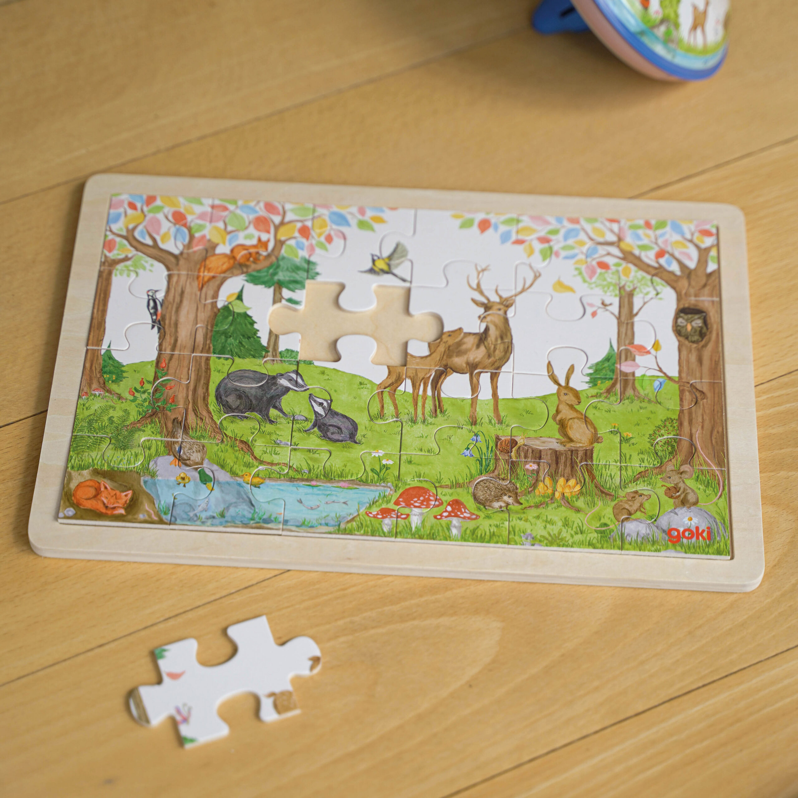 Mit diesem liebevoll gestalteten Puzzle erkunden kleine Entdecker die Welt des Waldes. Ob Reh, Fuchs oder Vogel – jedes Puzzleteil zeigt ein typisches Tier aus der Lichtung. Fördert nicht nur die Feinmotorik, sondern auch das visuelle Denken.