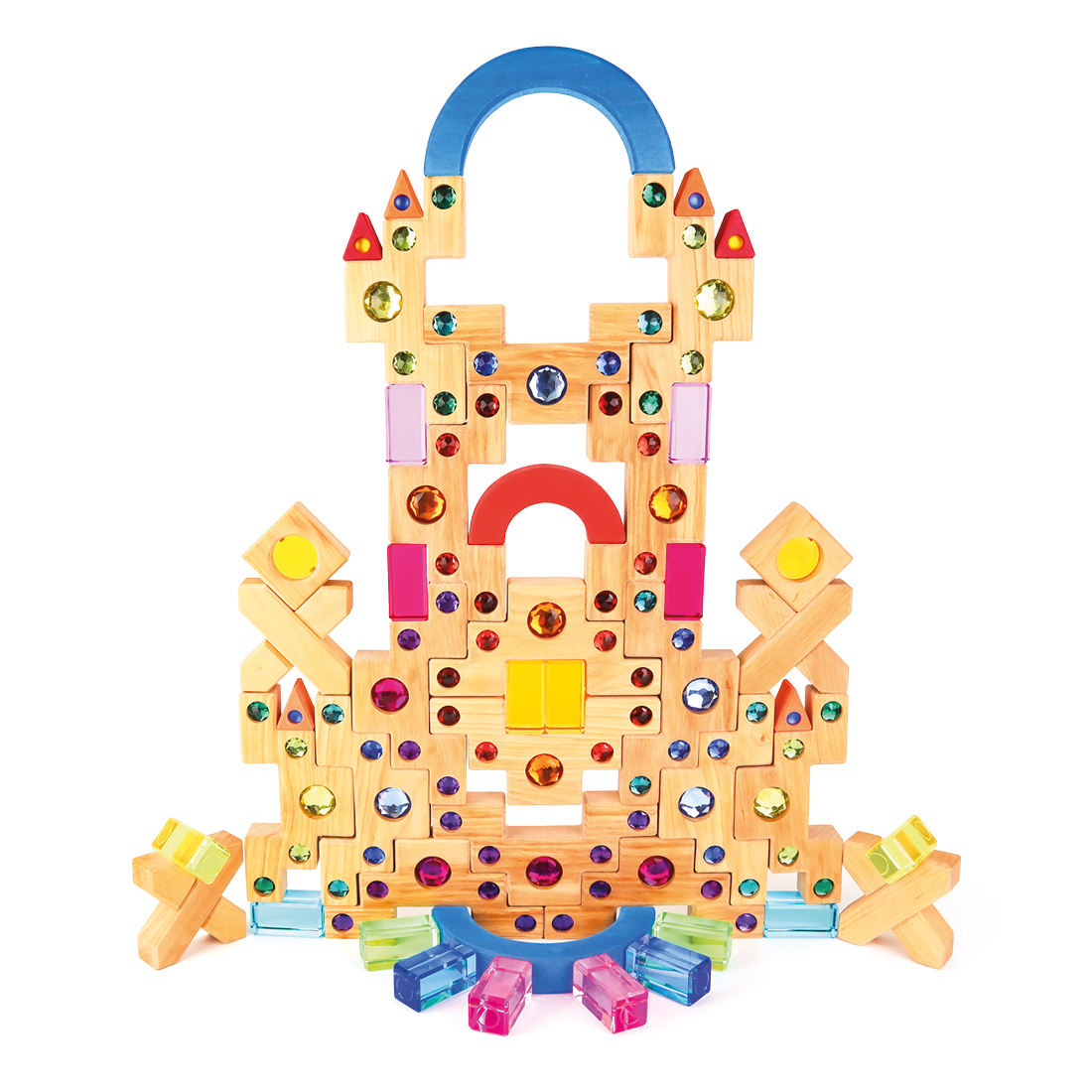 Idela kombinierbar mit X-Klötzen, Bunte Bögen, Kleine Dreiecke, Facettenbaukasten.
