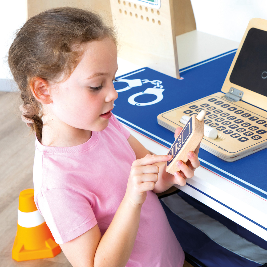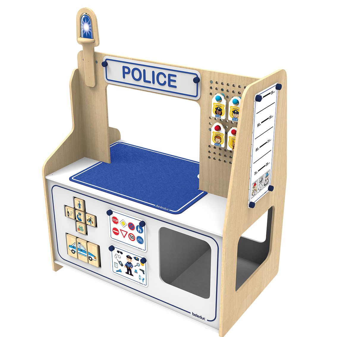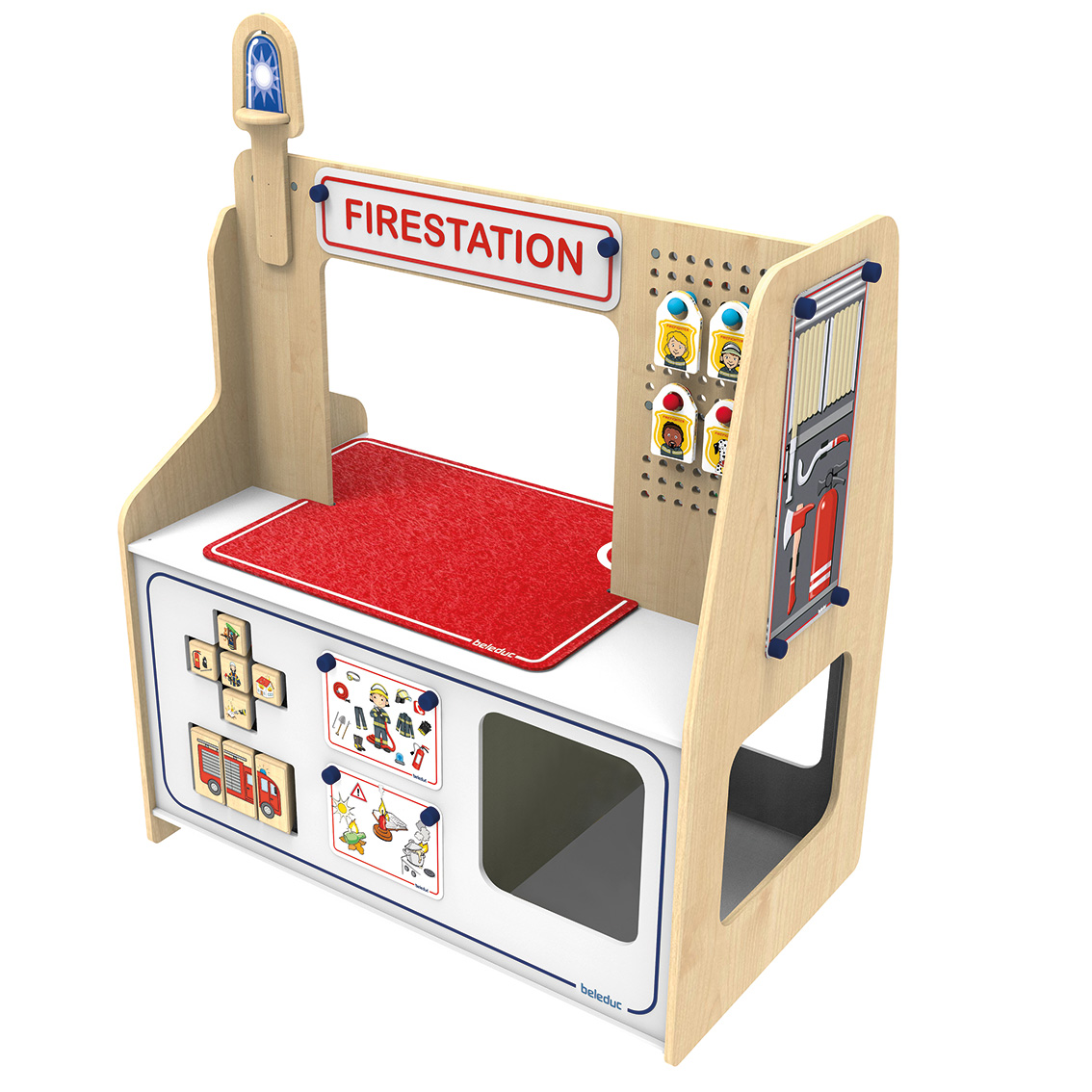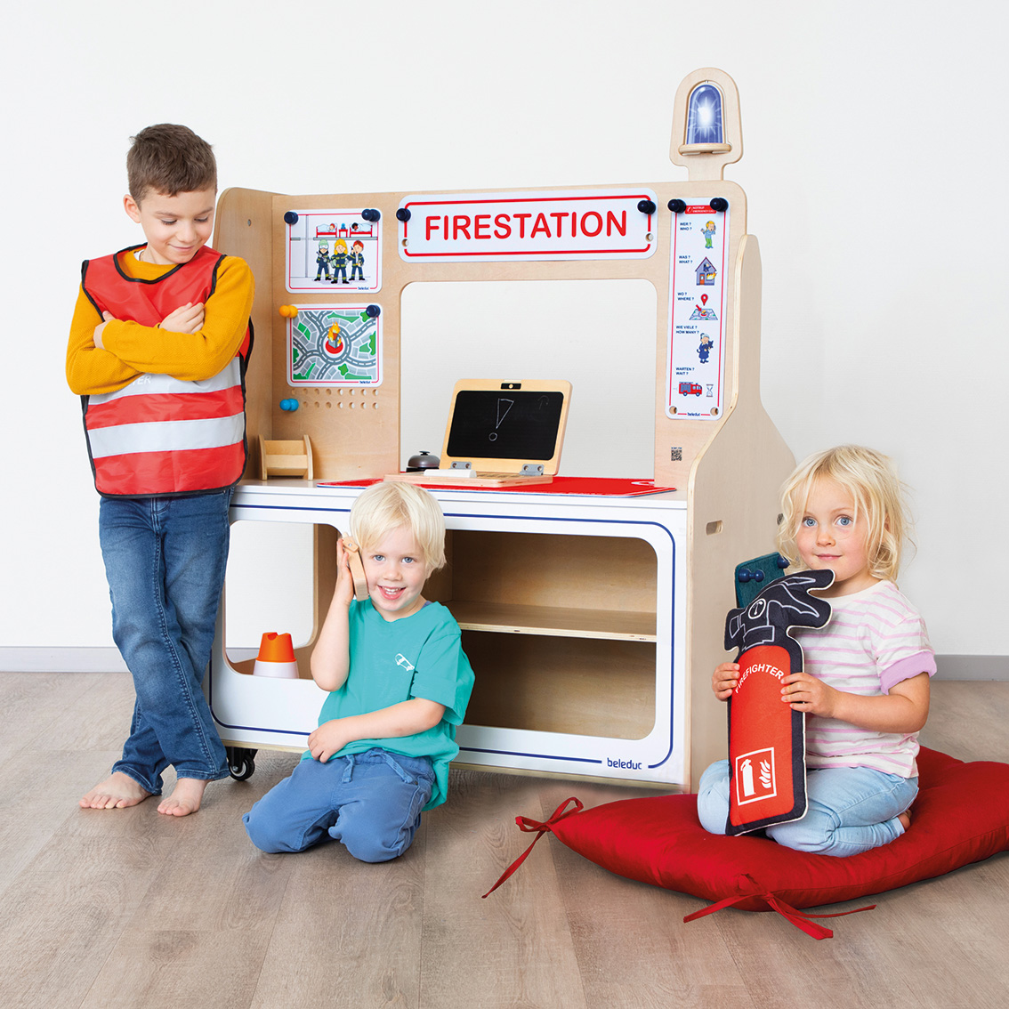 Gleich zwei starke Rollenspiel-Themen auf einmal werden in dieser Twin Station behandelt: Feuerwehr und Polizei. Je nachdem mit welchen Accessoires die robuste, beidseitig bespielbare Station bestückt wird, schlüpfen die Kinder in die Rolle der jeweiligen Einsatzhelfer. Dank der Lernkarten und dem vielseitigen Zubehör, erfährt der Nachwuchs außerdem spielerisch Wissenswertes über die Arbeit der Polizei und Feuerwehr.