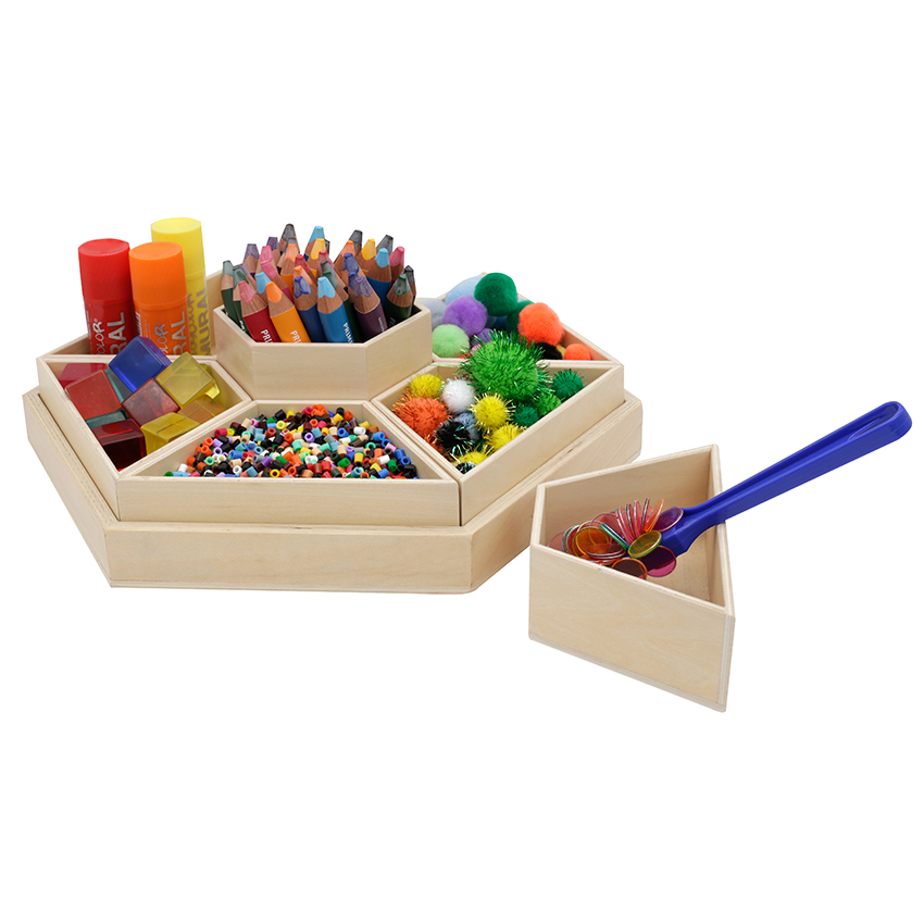 Der Materialständer bietet viel Platz für Mal- und Bastelmaterialien.