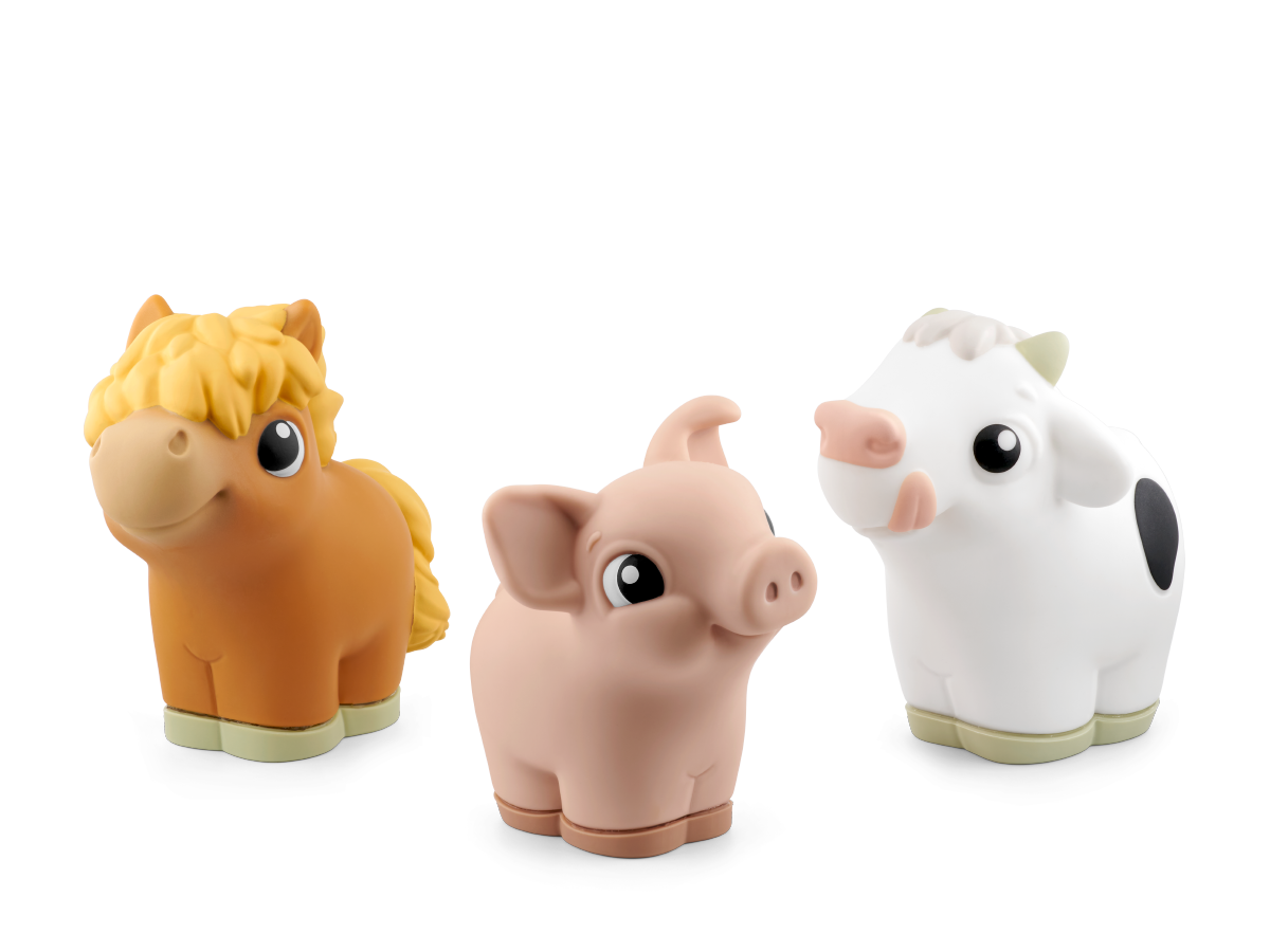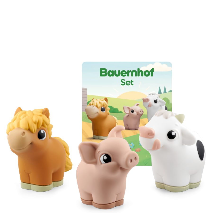Drüüücken, lauschen und lernen mit My First Tonies! Entdecke die Welt der Bauernhoftiere! Welches Geräusch macht die Kuh? Und wie macht das Schwein? Und wie macht das Pferd? Lerne deine ersten Bauernhof-Tiere spielerisch kennen. In kurzen, altersgerecht erzählten Geschichten erfahren die Allerkleinsten alles über ihre ersten Bauernhof-Tiere, üben ihr Hörverstehen und ihre Sprachfähigkeiten und lernen ganz nebenbei neue Wörter. Ein Klangteppich mit echten Tiergeräuschen und Musik begleitet die kleinen Bauernhof-Fans beim offenen Spiel. Auf jedem Tonie lädt ein original tonies Tierlied mit eingängigen Melodien zum Mitsingen und Mitmachen ein. Gelesen und gesungen von Kindern und Erwachsenen! Mit echten Tiergeräuschen!
