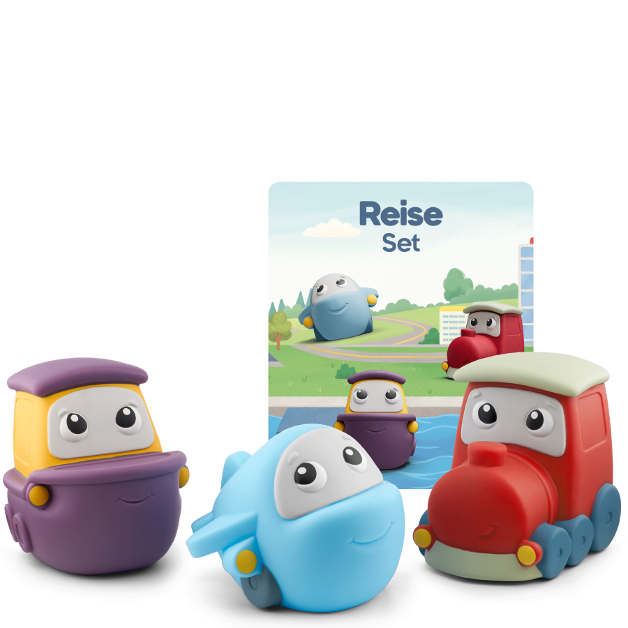 Drüüücken, lauschen und lernen mit My First Tonies! Entdecke die Welt der Fahrzeuge! Flieg hoch hinaus mit dem Flugzeug, pflüg durch die Wellen mit dem Schiff oder geh mit dem Zug auf große Reise! Kurze, liebevoll und altersgerecht erzählte Geschichten vermitteln erstes Wissen über Flugzeug, Schiff und Zug und fördern die Sprachentwicklung und das Hörverständnis kleiner Weltenbummler. Auf jedem Tonie lädt ein original tonies Fahrzeug-Lied mit eingängigen Melodien zum Mitsingen und Mitmachen ein. Ein Klangteppich mit echten Fahrzeug-Geräuschen und Musik begleitet die kleinen Reise-Fans beim offenen Spiel. Gelesen und gesungen von Kindern und Erwachsenen! Mit echten Fahrzeug-Geräuschen!