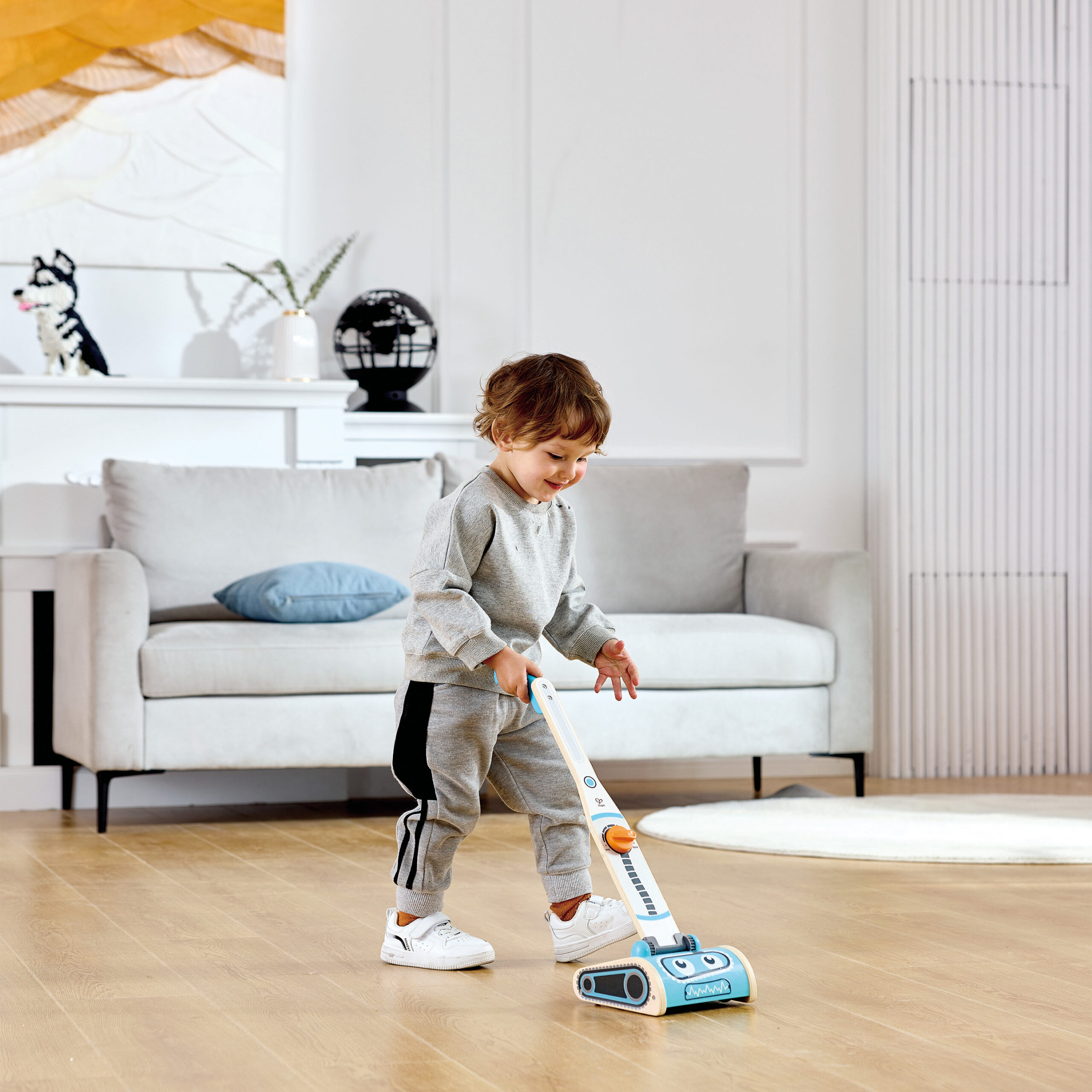Ganz realitätsnahe kann der Staubsauger tatsächlich die sechs kleinen Schmutzflecken aufsaugen.